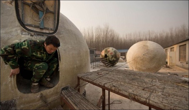 Китаец Лу Чженхай построил семь бункеров в форме шаров чтобы пережить конец света 21 декабря 2012 года.